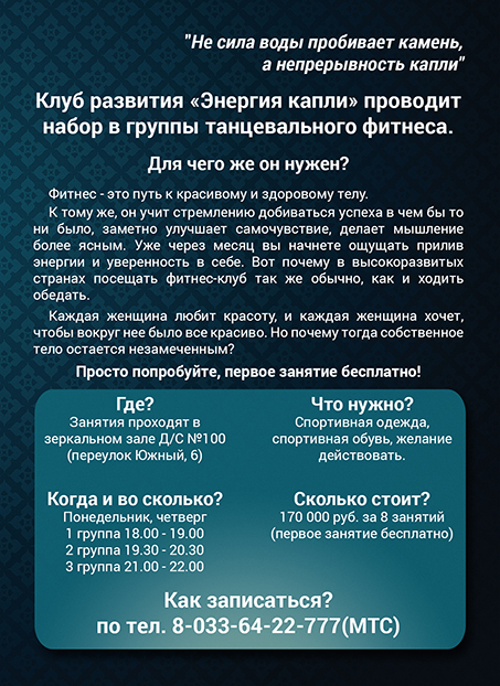 Главная » 2014 » Июнь » 29 » Двухстороння листовка для фитнес-центра (фото+дизайн)